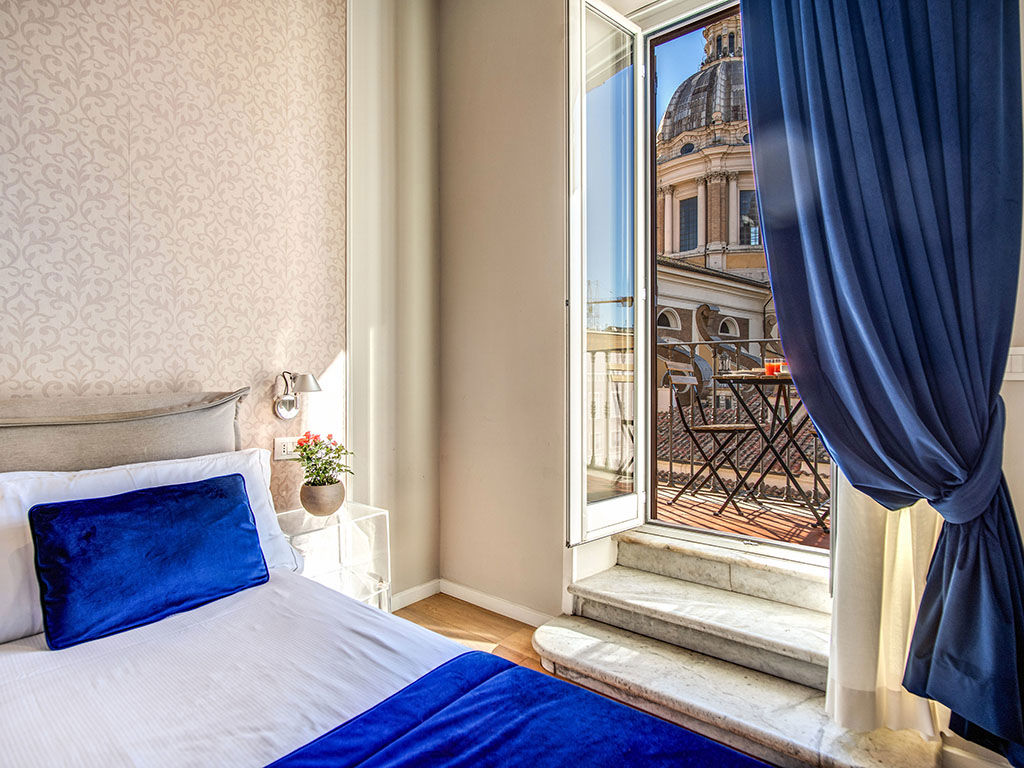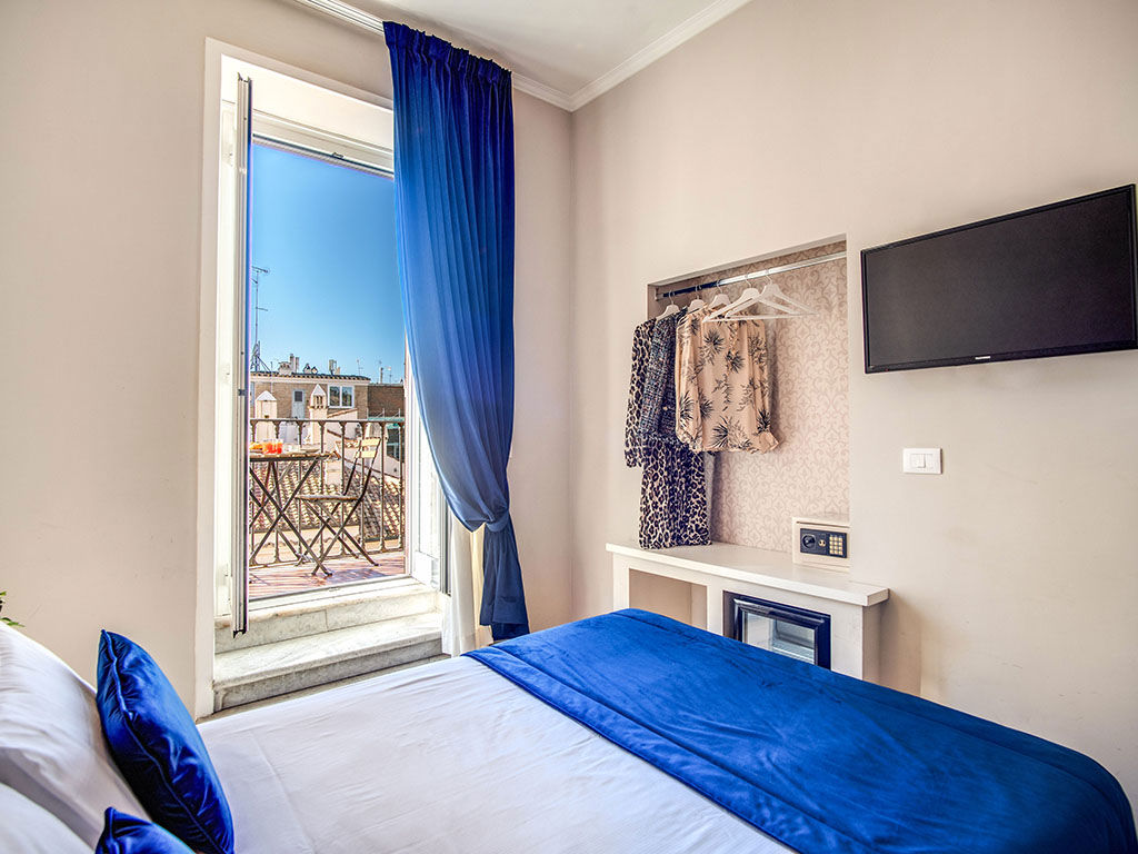 Dotata di un piccolo balconcino, renderà le colazioni indimenticabili ammirando la più bella via dello shopping romano: Via del Corso.